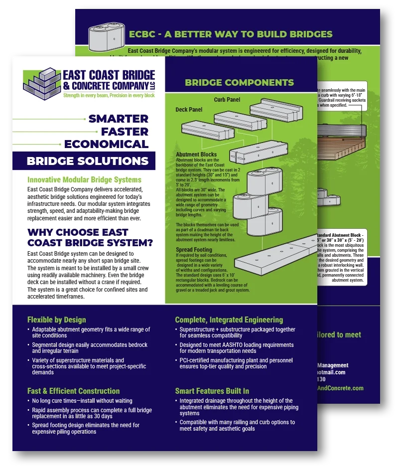 East Coast Bridge provides a full range of bridge design and engineering solutions tailored to meet specific site conditions and project requirements. Our team is capable of managing the entire process from initial site and subsurface exploration through permitting, structural analysis, and final design documentation.